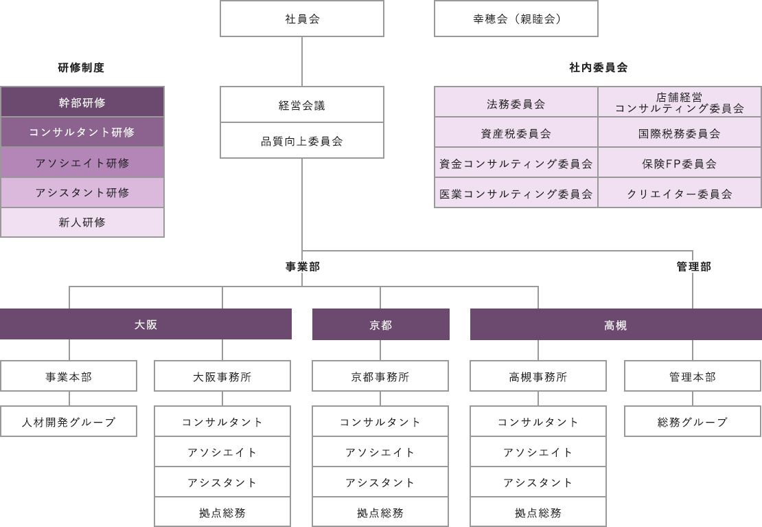 サービスごとに委員会を組織し、研修や相互チェックを通じて専門的なスキルを磨いています。複数の分野に精通したスペシャリストが、お客様のビジネスをサポートいたします。